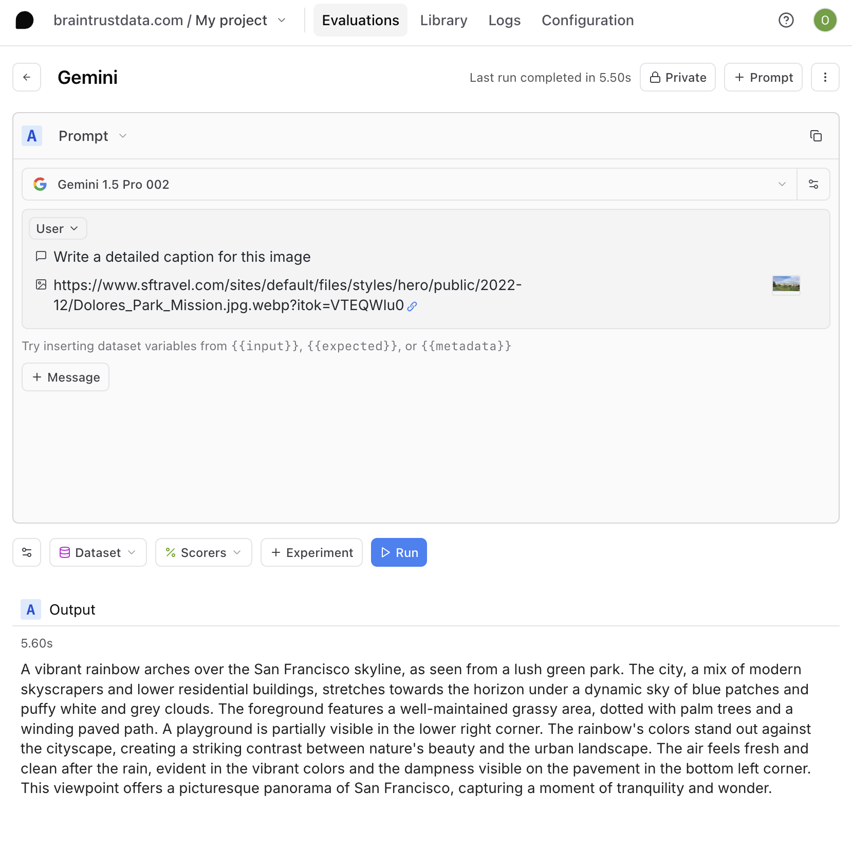 Every request through the AI proxy is logged to Braintrust for deeper insights into your performance and usage. Whether you’re exploring document extraction, image captioning, or other multimodal use cases, the proxy lets you integrate Gemini into your applications with just a single-line code change.